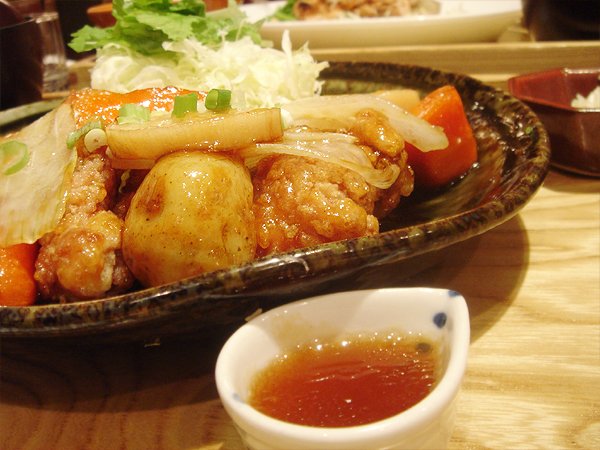 哇丫))) 網友推薦的雞肉蔬菜燴黑醋醬定食 (鶏と野菜の黒酢あん定食),果然是一品料理。