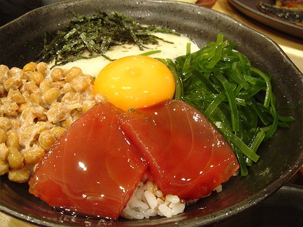 青森產的山芋泥+納豆+昆布+醃漬鮪魚.....集合山珍及海味的高營養蓋飯~大戸屋風ばくだん丼。
